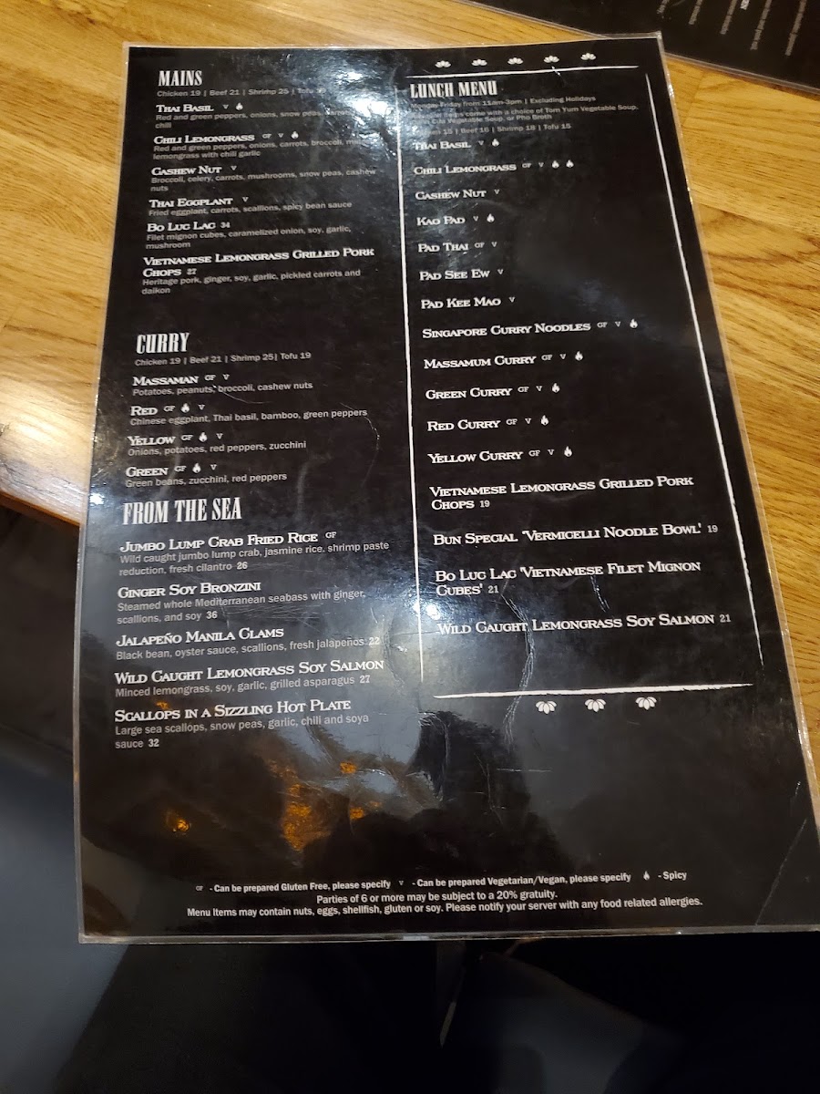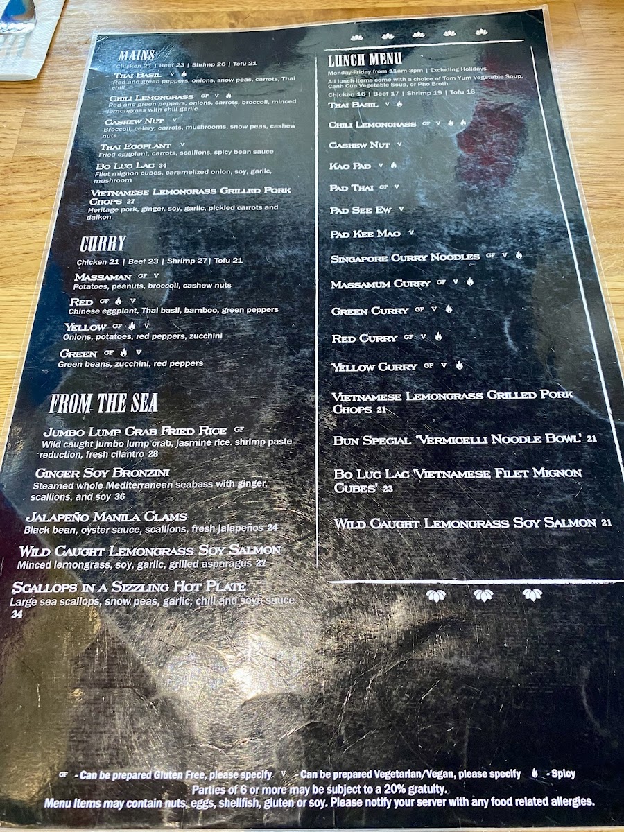 Wild caught lemongrass-infused salmon, served with choice of soup: Vietnamese sweet & sour, pho broth, or tom yum.
